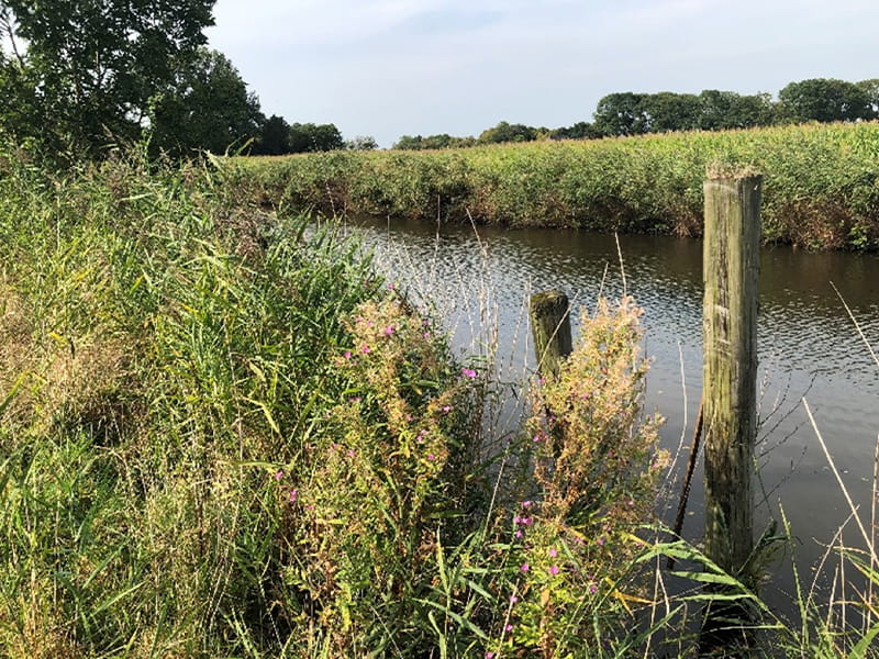 Hiddigwarden, Ostseite, von der Brücke der Lechterstraße bis zur Einmündung des Hekelner Kanal West