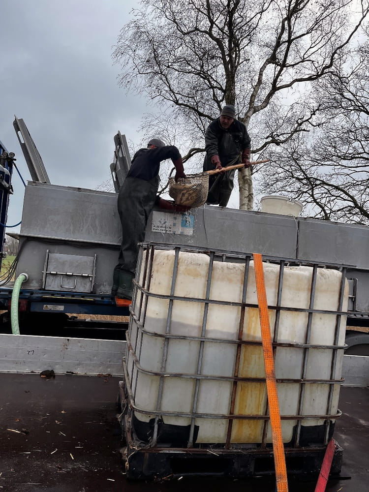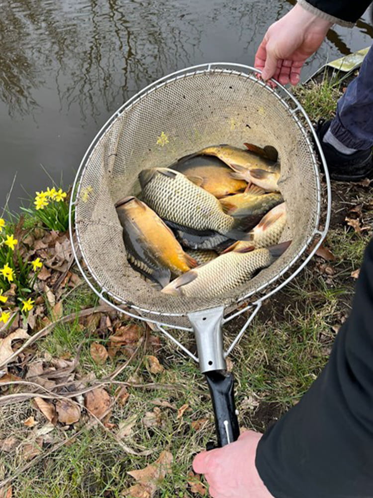 Am 28. März 2026 wurde im Rahmen unseres zweijährigen Besatzplans ein umfangreicher Karpfenbesatz durchgeführt. Insgesamt konnten 2.300 kg Karpfen von der Fischzucht Böckl übernommen werden.